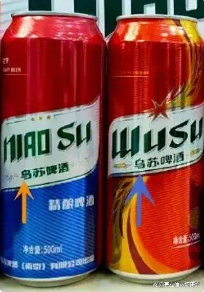 乌苏啤酒(右一)与高度近似的鸟苏啤酒