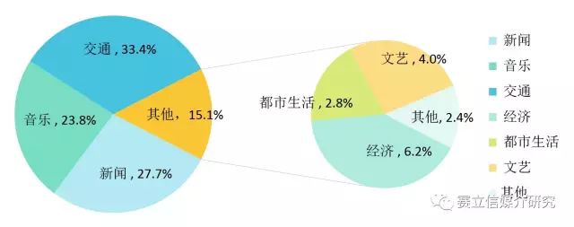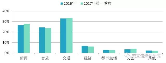 交通、音乐、新闻类频率继续保持着市场主导地位。