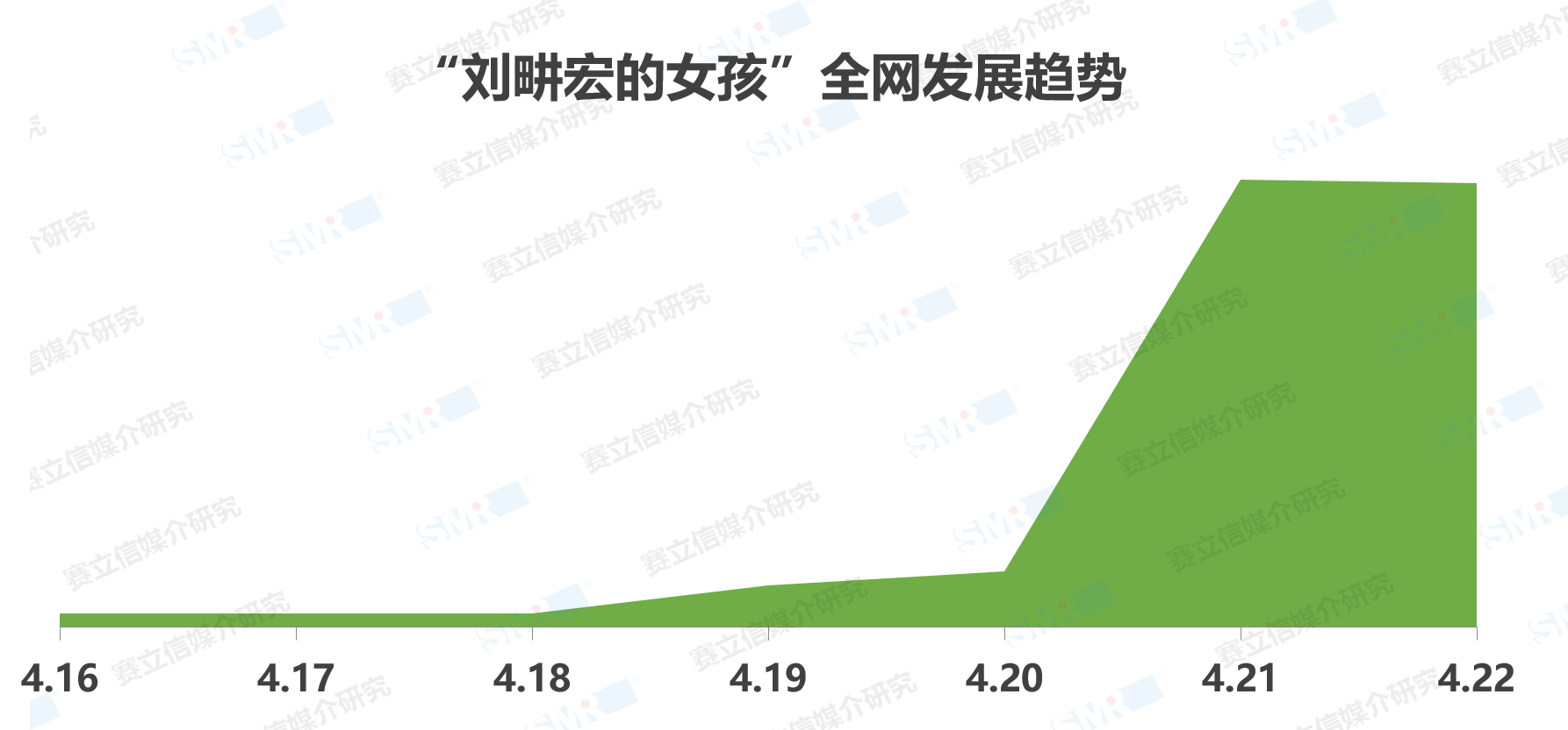 根据赛立信融媒体监测平台数据显示,“刘畊宏的女孩”事件在4月21日开始出现井喷式传播,当天共监测到32270条相关信息,现在事件依然处于传播爆发期。