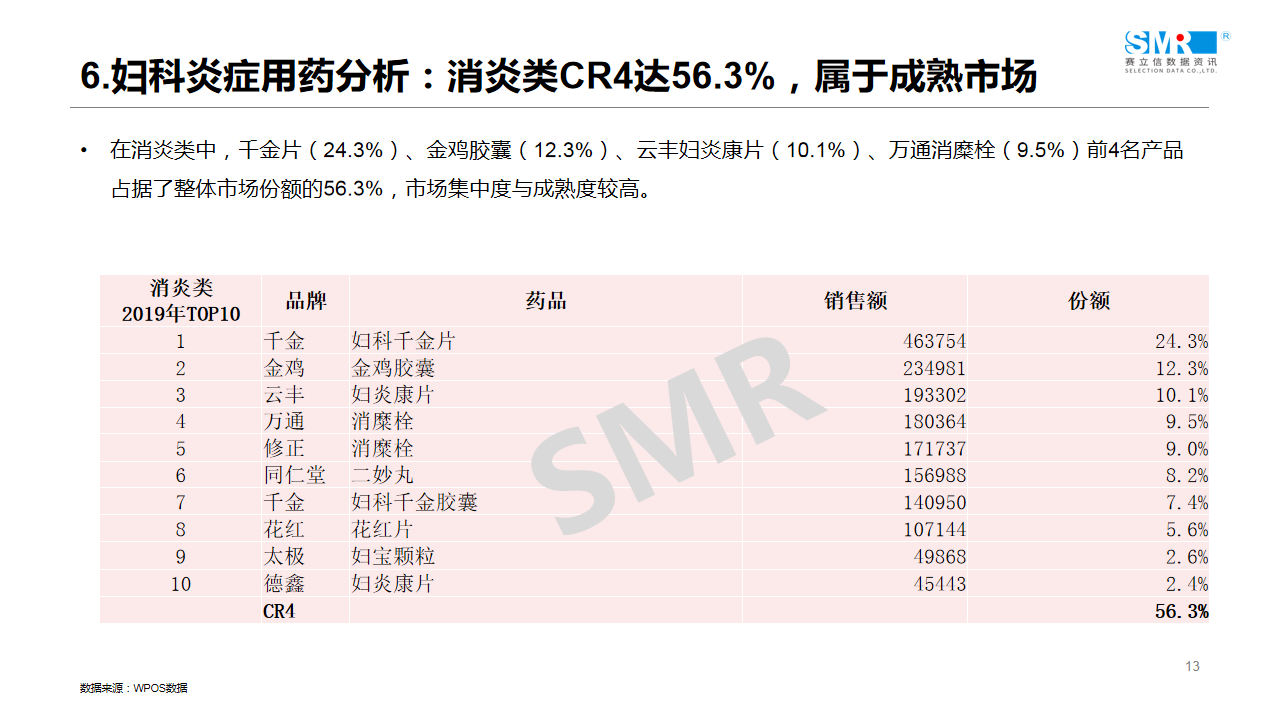 在女性OTC用药细分品类中,妇科炎症用药与调经用药市场表现强劲、代表性较强,同时也是女性朋友们最常遇到的健康问题。吴老师就这两大品类进行着重分析,内容包括各自的具体市场表现、产品表现等等。