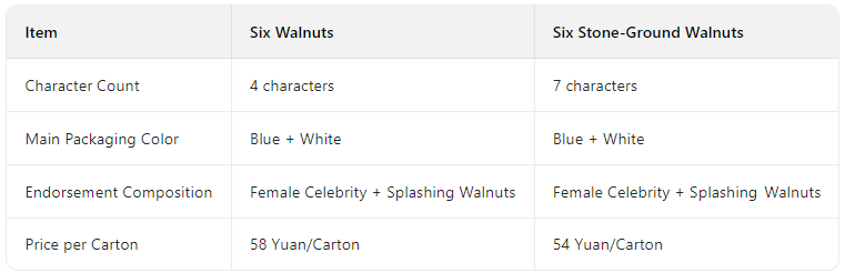Survey bonus: we showed un-branded pack shots on a Shijiazhuang street; 68 % pointed at “Six Stone-mill Walnuts” and said, “This is the new Six Walnuts”—a numeric footnote to “confusion”.